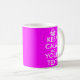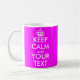 Mantenha calma e sua caneca de texto | Cor rosa-néon quente. Personalizável Mantenha Calma Mug com cores personalizadas como neon rosa. Crie a sua divertida, mantenha calma e continue paródia. Basta editar o texto deste modelo para fazer um design exclusivo. Exemplos populares são: mantenha a calma e festejar. Fique calmo e me ame. Fique calmo e beba chá. As canecas personalizadas são uma ideia de presente excelente para amigos e familiares.