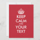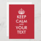 MANTENHA CALMA Personalizada e SEU TEXTO - palavras brancas e mude cor vermelha de fundo