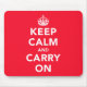 Um mousepad decorado com uma reprodução da leitura britânica do poster de 1939 WWII "mantem a calma e continua" no vermelho.