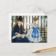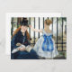 Manet The Railcard. Pintura a óleo na canvas de 1873. Uma das pinturas mais famosas de Edouard Manet, The Rail ou The Gare Santo-Lazare (Le Chemin de Fer), retrata o modelo Victorine Meurent sentado antes de uma cerca de ferro com um livro aberto e um filhote dormindo no colo. Ao lado dela está uma garotinha com um vestido branco bonito com uma fita azul grande. O vapor branco de um trem em movimento pode ser visto atrás da cerca. Um belo exemplo da sensação realista de Manet de iminência do modernismo. Um presente de excelente para fãs de Manet, pinturas famosas de filhotes, realismo francês e arte moderna.