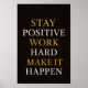 Fiquem inspirados com esta elegante arte motivacional que inclui a citação "Mantenha-se Positivo, Duro de Trabalho, Faça Acontecer." Projetado com uma fonte moderna e aparência limpa, é ideal para espaços de trabalho, salas de aula ou salas de estar.