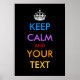 Mantenha calma e poster com cores personalizadas. Fique calmo e carregar na mancha de design. Fique calmo e festeje. Fique calmo e acelere.