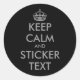 Mantenha os adesivos redondos na cinza | personalizável. Modelo de Keepcalme personalizável com cor e texto de fundo personalizados. Tema Vintage Keepcalmandcarryon. Crie sua própria paródia calma.