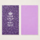 Seu personalizado "Fique Calmo" dizendo em um belo e personalizado decoro estilo do glamour. Um estilo "Manter Calmo" personalizado dizendo em um presente gentil. Humorístico ou caprichoso experimente suas palavras criativas em duas linhas editáveis de texto. Lembre-se de usar letras CAPITAL para obter melhores resultados. Designs de bordados estão disponíveis em uma ampla seleção de opções populares de cor. Use o link "Perguntar a este Designer" para entrar em contato conosco com suas solicitações especiais de design ou para obter assistência com as necessidades do seu projeto de personalização.