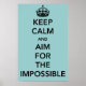 Mantenha-se calmo e mire para o impossível Poster a preto com fundo azul de espuma do mar.