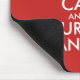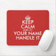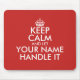 Mantenha-se calmo e deixe-o lidar com o mouse pad personalizado. Adicione seu próprio nome. Vintage mantém calma e carregar na modelo de tipografia com coroa. Mousepad "Mantenha Calma" divertido com citações ou palavras personalizáveis. Feriado bonito ou ideia de presente de aniversário para homens e mulheres. Personalize as cores de fundo em vermelho. Crie seus próprios acessórios de computador parodia KeepCalmandCarryOn engraçados. Basta editar o texto deste modelo para fazer um design exclusivo. As canecas personalizadas são uma ideia de presente excelente para amigos e familiares. Bebê humorístico. Faça um para pai, mãe, pai, mãe, irmão, irmã, tio, tia, avô, vovó, chefe de empresa, amigo, colega, colega de trabalho, empregado, funcionário de escritório etc.