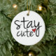 Design de tipografia doce e divertida com texto cursivo e um belo coração vermelho. Personalize este ornamento com a cor de fundo de sua escolha.