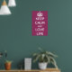 Mantenha a calma e o Poster da vida amorosa em todo branco com um fundo roxo.