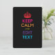 Um estilo personalizado, multicolorido, Manter Calmo e Continuar, dizendo em um presente personalizado. Humorístico ou caprichoso experimente suas palavras criativas nas duas linhas editáveis de texto. Lembre-se de usar letras CAPITAL para obter melhores resultados. Use o link "Perguntar a este Designer" para entrar em contato conosco com suas solicitações especiais de design ou para obter assistência com suas necessidades de personalização.