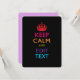 Um estilo personalizado, multicolorido, Manter Calmo e Continuar, dizendo em um presente personalizado. Humorístico ou caprichoso experimente suas palavras criativas nas duas linhas editáveis de texto. Lembre-se de usar letras CAPITAL para obter melhores resultados. Use o link "Perguntar a este Designer" para entrar em contato conosco com suas solicitações especiais de design ou para obter assistência com suas necessidades de personalização.