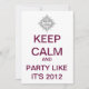 Nosso Convite de festas personalizado KEEP CALM 2012 é perfeito para Anos novos ou qualquer ocasião em 2012! A simples design moderna apresenta um filme maia com texto vermelho escuro. Personalize facilmente adicionando seus detalhes personalizados (hora, data, local, etc.) sem custo extra! Envelopado incluído com descontos de volume disponíveis! 2012, Y'all...hora da FESTA!!!!!!