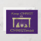 Cena simples de natividade, fundo roxo escuro, figuras de silhueta dourada sombreada. O bebê Jesus acentuou com feixes de luz. Mantenha o CRISTO em Natal. É menos caro enviar cartas postes do que as normais.