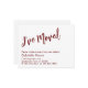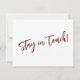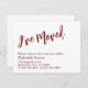 Neste simples design, o cabeçalho - "Eu Movi" - foi renderizado em uma fonte moderna de escrita manual. A mesma fonte foi usada para "Permanecer em Toque! na parte de trás. Outros detalhes aparecem em uma fonte bonito, tradicional sans-serif. Todo o texto, cores, fontes e layout podem ser alterados conforme desejar.
