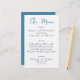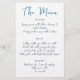 Este cardápio casual e caprichoso com uma fonte que imita a caligrafia é perfeito para um casamento de verão, um casamento casual ou qualquer outra celebração em que você gostaria de usar cartões de menu personalizados. Este modelo de menu apresenta um fundo azul - mas todas as cores deste cartão de menu de casamento podem ser personalizadas na ferramenta design! Aqui você também pode mudar a posição do texto.