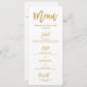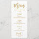 Menu à moda do casamento do ouro que caracteriza pias batismais modernas do roteiro e seu obrigado feito sob encomenda você na parte traseira.