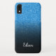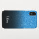 Design de texto personalizado elegante de letra cursiva manuscrita branca. Fundo de fotos com brilho azul brilhante da tendência. Design com design preto de ombre. Altere o estilo da fonte, o tamanho ou escolha sua cor favorita. Crie seu próprio caso e/ou faça um design exclusivo de coordenação para seu melhor amigo.