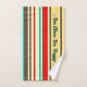 Tragam um talão retrô para o seu banheiro com esta toalha de banho personalizável! Apresentando faixas verticais ousadas em uma paleta de cores inspirada na safra e a mensagem alegre "Bee Clean, Bee Happy", esta toalha adiciona um toque alegre à sua rotina diária. Com a opção de personalizar o texto, você pode criar uma mensagem exclusiva e significativa apenas para você. Acentuado com ilustrações adoráveis de abelhas, é perfeito para amantes da natureza, entusiastas da apicultura, ou qualquer pessoa que queira iluminar a decoração do banheiro. Feita com material suave e absorvente, essa toalha combina funcionalidade com estilo — ideal para indivíduos ecologicamente conscientes e design.