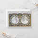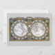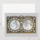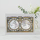 Ilustração vintage mapa-múndi antigo com os dois hemisférios por Claude Auguste Berey, 1688. Este mapa-múndi antigo internacional apresenta os hemisférios oriental e ocidental, bem como os pólos norte e sul e todos os continentes. Caixas de texto circundam os hemisférios deste atlas, uma borda dourada ornamentada decora as bordas e um pergaminho decorativo está no topo.