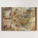 MAPA ANTIGO DO QUEBRA-CABEÇA DE SERRA DE VAIVÉM DO POLÔNIA COM TODAS AS PARTES DESAFIANTES MINÚSCULAS DO QUEBRA-CABEÇA A UNIR!
