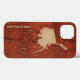 Uma recriação digital de um mapa da silhueta do Alasca formado por raspagem cuidadosa da superfície avermelhada no verso do latido de pássaros (Betula papyrifera) para revelar a camada mais leve e amarelada abaixo. Este é um artesanato tradicional entre Americanos nativos/Primeiras Nações nos nortes Estados Unidos e Canadá. Adicione seu próprio texto.