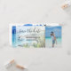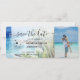 Destino Cartão de embarque para casamento na praia Bilhete dourado de avião Salve a data com ilustração de palmeira na praia de aquarela, México ou qualquer outro local tropical. Adicione sua foto