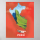 Mapa do Peru Ilustrado poster de viagens da paisagem e um pequeno avião leve.