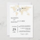 este convite para o casamento apresenta um mapa de cor d'água de tom bege e uma bela fonte de script, com os detalhes mais finos na frente. A maioria dos textos é facilmente personalizável para atender às suas preferências, e você pode mover ou ajustar o local do coração para mostrar seu local de casamento. Este convite é excelente de uma aventura de casamento, férias ou no exterior.