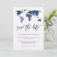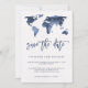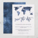 Mapa Mundial em Aquarela Azul | Convite de Casamen