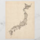 Um mapa do Japão, feito a partir de uma colagem de músicas antigas e antigas em um fundo antigo.