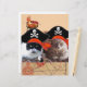 Os gatos piratas estão sentados num velho tapete turco com mapas do tesouro de piratas em fundo cor-de-rosa. Foto e design de gráfico digital por Búlgaro Lumini (c)