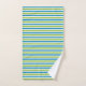 Maple deixa uma toalha azul e verde do banheiro. Mostra lindas folhas de maple em espirais e bolinhas azuis e verdes. A toalha da mão apresenta um padrão listrado com listras verdes e azuis e o pano de lavagem é de cor verde sólida.
