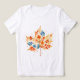 The image shows a watercolor illustration of a maple leaf, decorated with flowers and butterflies.