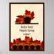 Uma ilustração gráfica do xarope de bordo com folhas de bordo do artista/designer Charmaine Paulson na poster da cozinha do país.