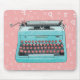 Máquina de escrever azul em Mousepad cor-de-rosa