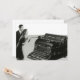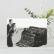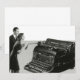 Ilustração vintage em preto e branco de design de negócios apresentando uma enorme máquina de escrever manual antiga para escritores de livros literários digitarem um romance. Um empresário e uma executiva estão ao lado dela. Equipamento de escritório antigo para assistentes administrativos auxiliarem a equipe de gestão na digitação de cartas e outras correspondências de escritório.