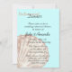 O convite à moda do jantar de ensaio do casamento do tema da praia feito na água-marinha clara com gráficos de uns grandes moluscos gosta do escudo, no canto inferior esquerdo do convite. O texto colorido tan e preto está pronto para personalizar para seu jantar de ensaio do casamento.