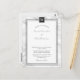 Um convite de casamento simples e bonito em preto e branco. Num fundo de mármore, esse design minimalista é elegante em sua simplicidade. Um emblema de ornamentado no topo é onde você colocará seu primeiro apelido. Se você está procurando um convite de casamento com a RSVP para ajudá-lo a economizar dinheiro, aqui está. No verso, você pode colocar seu endereço de devolução, uma mensagem pessoal e também fornecer aos seus convidados informações do seu site. Em seu site, eles podem RSVP. Isso economiza dinheiro. Uma maneira fantástica de economizar e ainda ter um belo convite para o casamento. Se preferir, você também pode listar um número de telefone e seu contato por e-mail para obter mais opções sobre como eles podem contatá-lo sobre seu próximo casamento. Se precisar de ajuda para personalizar isso, entre em contato com uma de nossa equipe de design clicando no botão abaixo ou através do link em nosso perfil.