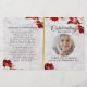 Personalize este programa funerário moderno e elegante com sua própria foto e texto para criar um tributo especial a seu amado. Um programa "In Loving Memory" que apresenta um mármore e uma burgundy esmagando flores com um programa memorial de sotaque dourado. No cobrir da frente está uma foto do seu amado, seu nome, datas, o local do memorial e a data do evento. Na dentro está um obituário e uma ordem de serviço, e na parte de trás está uma nota de agradecimento e o local da Nossa loja também oferece outros designs que estão oferecendo verde botânico com rosas e folhas de sotaque design e brilho/ouro e folhagem Eucalipto para atender a todas as demandas.