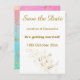Branco e Dourado Simples e Elegante Salve o cartão de data personalizável e o design personalizado com mármore pastel inverso