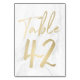 Adicione um toque de na moda à sua recepção de casamento com placas de mesa personalizadas. Os cartões de mesa de casamento apresentam um fundo de mármore branco e uma letra falsa de script de moda dourada. Números adicionais podem ser encontrados na coleção abaixo.