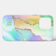 Caso Marble Trendy Agate Pastel iPhone 13 Pro: Um modelo de texto é incluído para personalizar com seu monograma ou outro texto desejado. Você também pode excluir o monograma de amostra se desejar solicitar o caso sem texto. Por favor, note que o efeito de brilho não é real, mas apenas simulado. Faz uma declaração de chic e na moda onde quer que você vá.