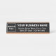 As placas de nome são frequentemente usadas para exibir nome e cargo, mas também podem ser usadas para exibir seu nome comercial e outras informações de sua empresa. Placa de nome de mesa de tamanho padrão que você pode personalizar para colocar seu logotipo, nome comercial, endereço e número de telefone. Personalize-o e mostre-o no seu receptáculo para que os seus clientes ou clientes encontrem facilmente o seu endereço e informações de contato. As cores design são textos brancos sobre fundo preto. Verifique a aparência após carregar o logotipo e digitar textos. Se a aparência lhe agrada, você pode colocar seu pedido agora. Se você precisar redimensionar e mover o logotipo e os textos para o ajustado nesta placa de nome ou em outros estilos e tamanhos que você escolher, mude na ferramenta design. Você também pode alterar a cor da fonte, o estilo da fonte e a cor do plano de fundo na ferramenta design. Placa de nome da mesa como material de marketing para anunciar seu nome de empresa ou de marca. Um suprimento de escritório que você pode exibir para criar reconhecimento de nome de marca.