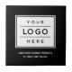 O azulejo personalizado quadrado apresenta o design de logotipo profissional da sua empresa e texto personalizado para um local, slogan. site ou outras informações. Basta adicionar o logotipo de sua empresa à imagem e ao tipo de marcador preto e branco em seu texto preferido. As cores podem ser modificadas.