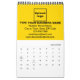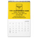 Marca comercial de cor amarela no calendário personalizável. Personalize-o carregando o logotipo da sua empresa, digitando seu nome, endereço, número de telefone, e-mail e site. Você pode incluí-lo em seus produtos de promocional, fornecer itens ou presentes aos seus clientes ou clientes, uma estratégia de marketing para anunciar sua empresa ou promover seu nome de marca. Calendário personalizável que você pode usar para criar reconhecimento de nome de marca e para fazer lembretes sobre compromissos, reuniões, agendamentos, eventos ou ocasiões. Verifique a aparência do cobrir para a página traseira após o upload do logotipo e digitar textos. Se a aparência lhe agrada, você pode colocar seu pedido agora. Se você precisar redimensionar e reposicionar o logotipo e os textos para o ajustado nos modelos ou no tamanho e estilo que escolher, ajuste na ferramenta design. Você também pode alterar a cor do plano de fundo, a cor da fonte e o estilo da fonte na ferramenta design.