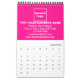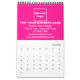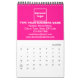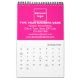 Marca comercial cor-de-rosa no calendário personalizável. Personalize-o carregando o logotipo da sua empresa, digitando seu nome, endereço, número de telefone, e-mail e site. Você pode incluí-lo em seus produtos de promocional, fornecer itens ou presentes aos seus clientes ou clientes, uma estratégia de marketing para anunciar sua empresa ou promover seu nome de marca. Calendário personalizável que você pode usar para criar reconhecimento de nome de marca e para fazer lembretes sobre compromissos, reuniões, agendamentos, eventos ou ocasiões. Verifique a aparência do cobrir para a página traseira após o upload do logotipo e digitar textos. Se a aparência lhe agrada, você pode colocar seu pedido agora. Se você precisar redimensionar e reposicionar o logotipo e os textos para o ajustado nos modelos ou no tamanho e estilo que escolher, ajuste na ferramenta design. Você também pode alterar a cor do plano de fundo, a cor da fonte e o estilo da fonte na ferramenta design.