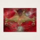 Uma face estilizada de gato feita de curvas e curvas douradas brilhantes, com olhos largos de ouro verde, contra um fundo fractal vermelho.