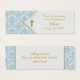 Elegantes marcas de bomboniere de batismo e batizado de menino em damasco azul bebé e cruz dourada. Adicione a sua mensagem na frente e no verso à sua escolha de estilo de letra, tamanho de letra e cor de letra. Quando chegarem, basta usar um perfurador em ambas as extremidades e passar a fita ou cordão decorativo pelo buraco e amarrá-lo ao seu favor ou presente.