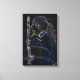 Fotografia alterada para abstrato brilhante de perfil de uma banda marchante feminina uniforme, segurando seu chapéu de penas em uma mão e um clarinete na outra.