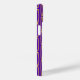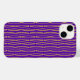 Esta capa de telefone tem uma design de Mardi Gras geométrica de uma espécie de ovais planas se repetindo através da design em ouro e verde em um campo de roxo.