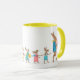 Faça alguém sorrir esta Páscoa com esta caneca bonita e antiquada que apresenta uma família de lebres numa caçada de ovos de Páscoa, vestida com roupas coloridas de primavera. A design inspira-se no trabalho da ilustradora vitoriana Kate Greenaway. A caneca pode ser personalizada e faz um presente de Páscoa excelente - particularmente se você lhe der um ovo de chocolate nela!